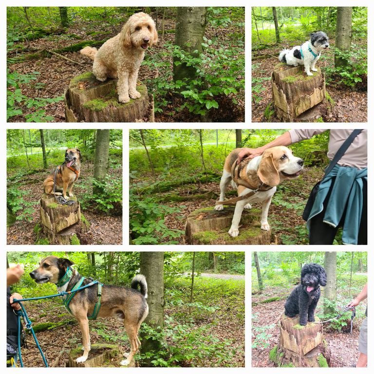 Die Hunde lernen die Anwesenheit anderer Hund zu akzeptieren und ein ruhiges, soziales Verhalten wird gefördert.